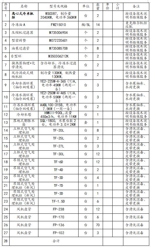 2.1空调主机技术维保服务要求: