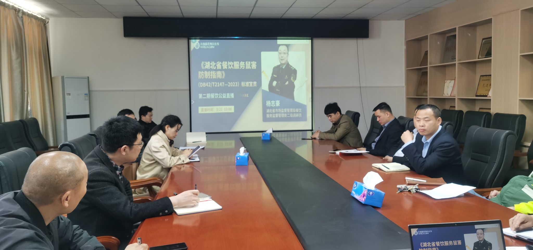 本次直播培训,由湖北省市场监督管理局餐饮服务监督管理处二级调研员杨志豪主讲,以宣贯《湖北省餐饮服务鼠害防制指南》(DB42/T2147-2023) 标准为主题内容,详细解读了《指南》的核心内容和实施要点,包括出台的背景与机动、标准的框架与内容、实施的对策与举措等多个方面。同时,结合实际案例,分析了鼠害对餐饮服务的潜在威胁,强调了防制工作的重要性和紧迫性。