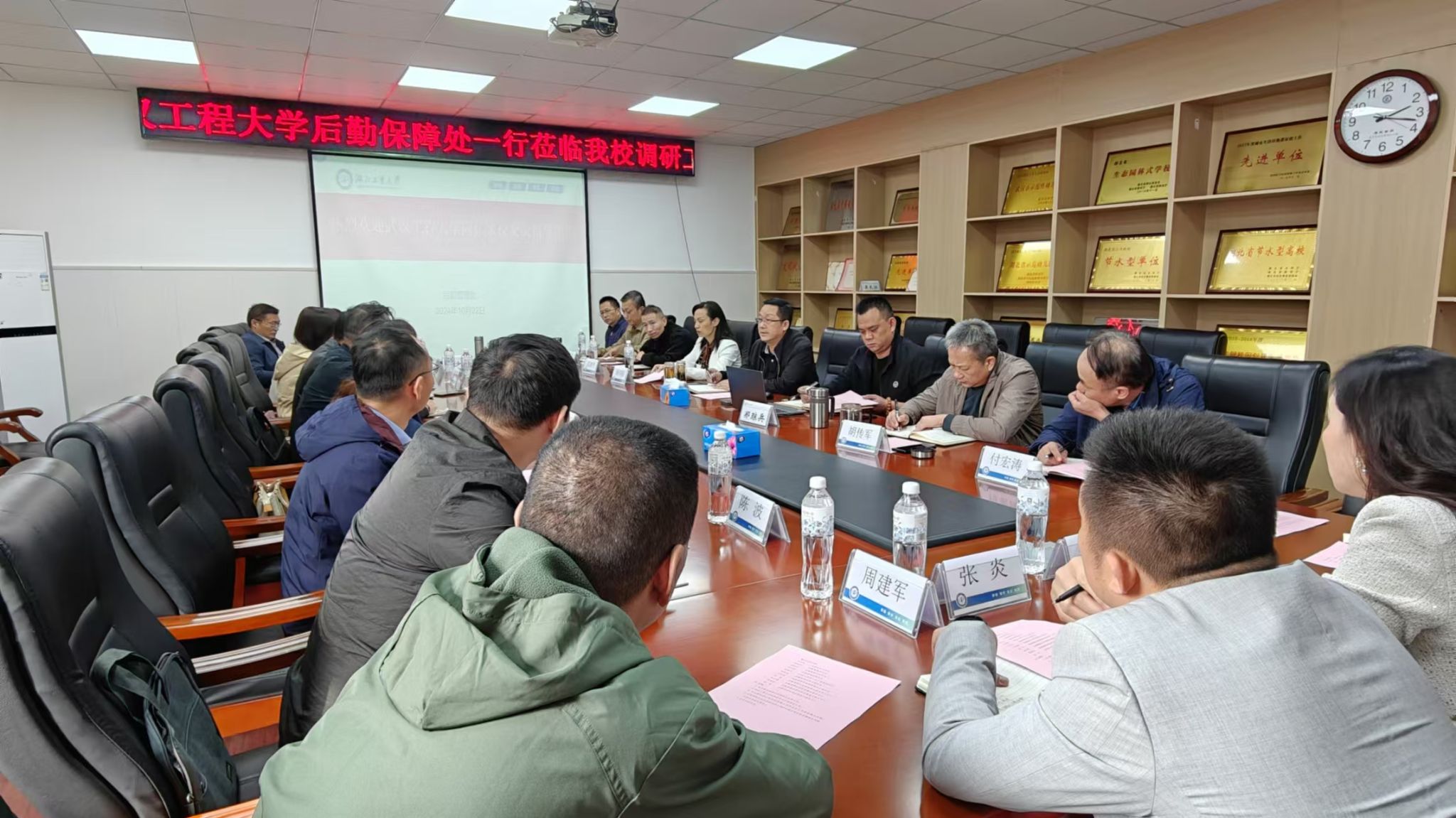 10月20日下午,武汉工程大学后勤保障处一行11人莅临我校调研后勤物业、水电、绿化、幼教、饮食等方面的工作,后勤管理处领导班子成员及各有关科室负责同志参加。
