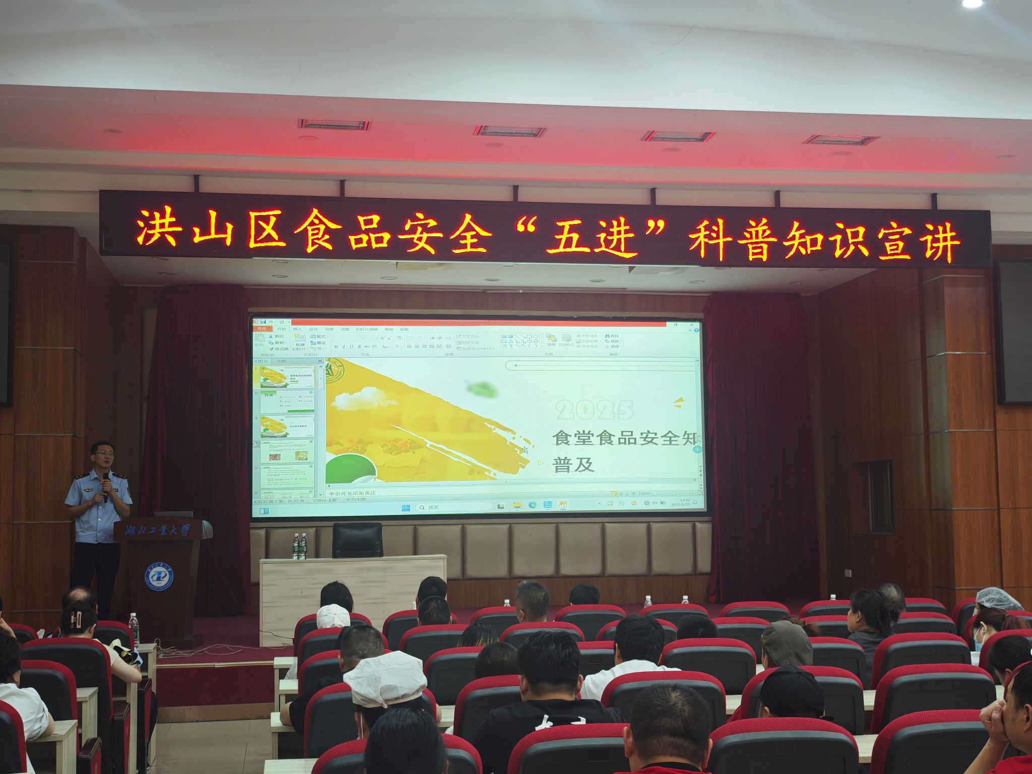为进一步强化校园食品安全管理,切实提升我校食堂从业人员的食品安全意识,6 月 25 日下午,后勤管理处携手洪山区市场监管局,在博学堂报告厅成功举办食品安全 “五进” 科普讲座。此次讲座特邀华中农业大学银石博士与洪山区市场监督局徐波担任主讲人,饮食管理中心全体工作人员、食堂安全管理人员及一线工作人员近 200 人积极参与。