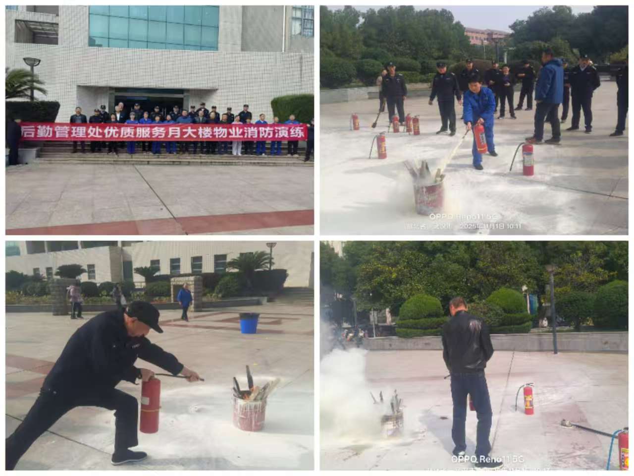 自后勤管理处开展优质服务月活动以来,物业管理与服务中心还举办了多项大型活动。11月1日,组织中心职工、服务企业员工联合开展了消防演练活动,通过演练增强物业人员消防意识,了解火情处置程序,掌握灭火器使用方法,提高物业人员处置火情的能力。