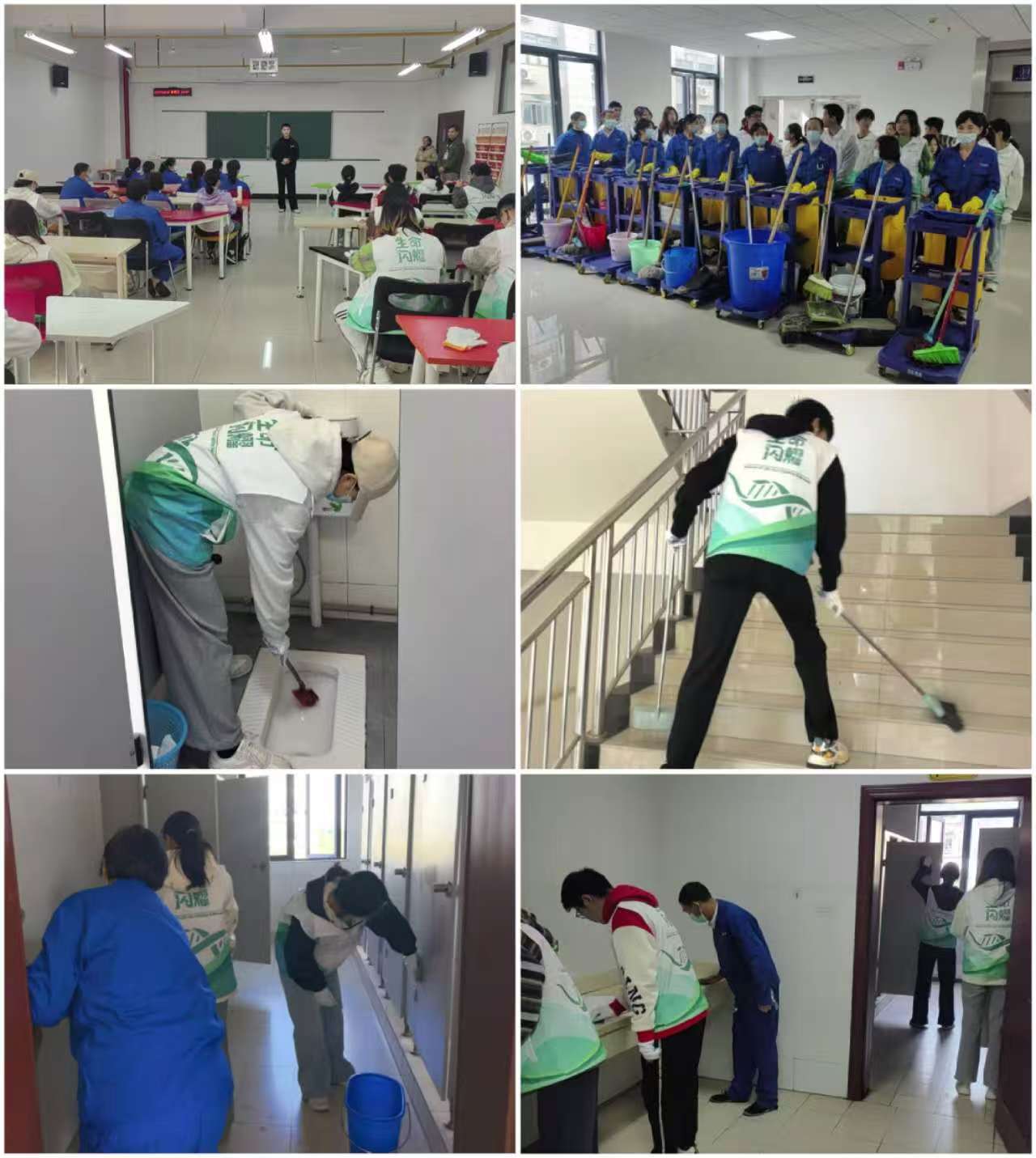 首先,生命科学与健康工程学院张瀚泽老师介绍了活动内容和注意事项,随后将学生们分成多个小组对5号教学楼公共区域展开深度清洁,用抹布、清洁球等工具细致擦拭厕所墙面,用扫帚、拖把彻底清理楼道及步行楼梯,亲身体验物业保洁工作的艰辛。通过“角色互换”式劳动实践,同学们深刻认识到“维护公共环境人人有责”的重要性,进一步增强了“珍惜劳动成果、共建美丽校园”的集体意识。